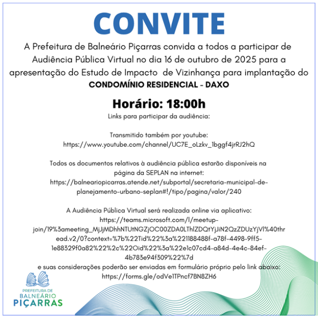 HomePiçarrasCondomínio Residencial Daxo: convite para Audiência Pública Virtual Folha do Litoral3 de outubro de 2025 04:22 0 CATEGORIA Piçarras Compartilhar comAutorFolha do Litoral
