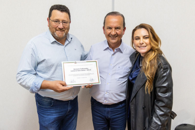 A homenagem foi entregue em ato que contou com a presença da deputada, do governador do Estado e de representantes do tradicionalismo catarinense. O evento marcou o reconhecimento do desempenho do MTG/SC, que contou com apoio e investimentos do Governo de Santa Catarina para participar da competição nacional.Natural de Urubici, Alex Corrêa destacou o orgulho em representar o Estado e reforçou o compromisso do movimento com a valorização da cultura e das tradições gaúchas.