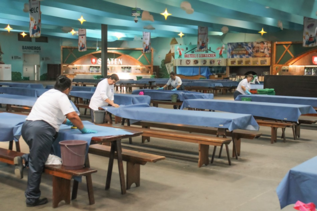 Malu Cordeiro de Oliveira é uma delas. Aos 32 anos, ela atua na equipe que faz a limpeza dos pavilhões. Desempregada desde 2020, encontrou na Oktoberfest a oportunidade para voltar ao mercado de trabalho. Ela integra o grupo de 635 pessoas contratadas temporariamente pela empresa Minister, que presta os serviços de limpeza e segurança na festa. Malu trabalha das 9h às 18h para deixar tudo em ordem nos setores da festa.