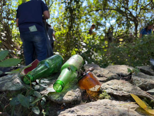 - Vidros: Garrafas inteiras e cacos que oferecem risco de corte a banhistas.