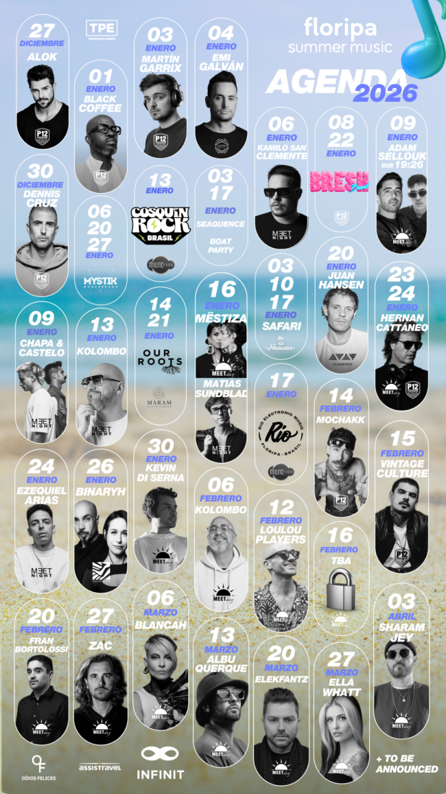 Realizado anualmente, o festival ocupa o celebrado P12 Parador Internacional, em Jurerê Internacional, reunindo artistas consagrados e novos expoentes da cena global em uma maratona de shows que cruzam estilos, gerações e fronteiras sonoras.