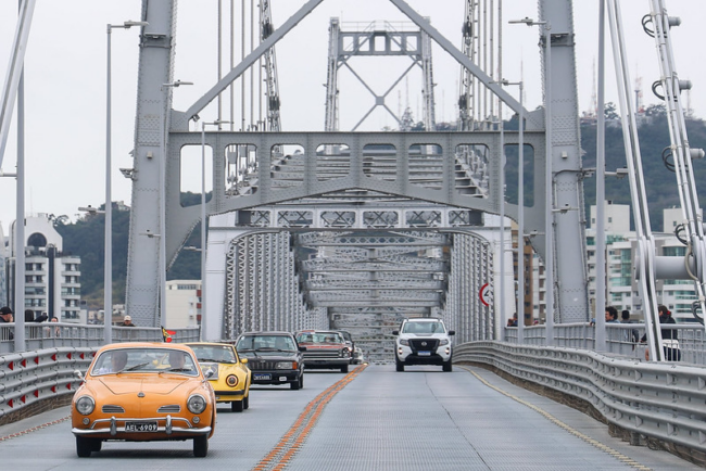 Da Beira-mar Norte, a grande carreata percorreu a principal via da Capital, passou pela Ponte Hercílio Luz e encerrou com festa na Beira-mar Continental, em um cenário marcado por motores clássicos, buzinas nostálgicas e o entusiasmo dos colecionadores.