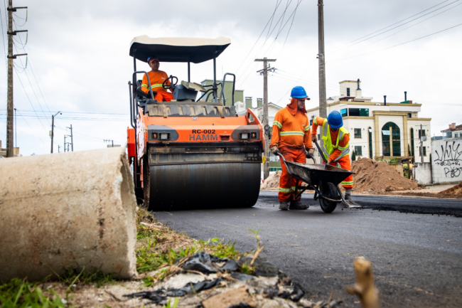 Iniciado asfaltamento de mais um trecho da Avenida Lions Internacional, nos Ingleses