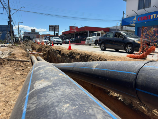 A instalação da tubulação, que possui pouco mais de um quilômetro de extensão, é fruto de uma parceria entre a empresa executora e o Semasa, que forneceu os materiais. Insta salientar que a antecipação da instalação da adutora antes da pavimentação definitiva representa uma economia de milhões de reais aos cofres públicos, evitando futuras intervenções na via nova.