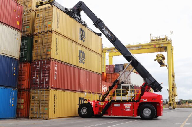 Antes de iniciar as operações, a Reach Stacker passou pelo “Endurance Test”, um teste de 84h em operação contínua – com parada apenas para carregamento – sem apresentar falhas. A empilhadeira opera no depot da Iceport, câmara frigorífica, onde os contêineres reefer são armazenados – cargas com temperatura controlada.