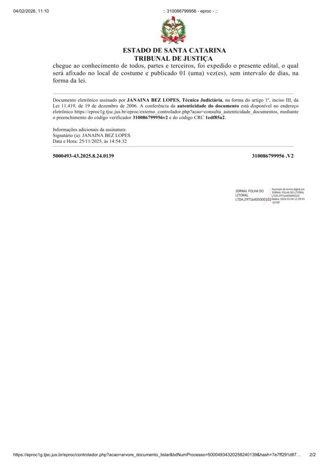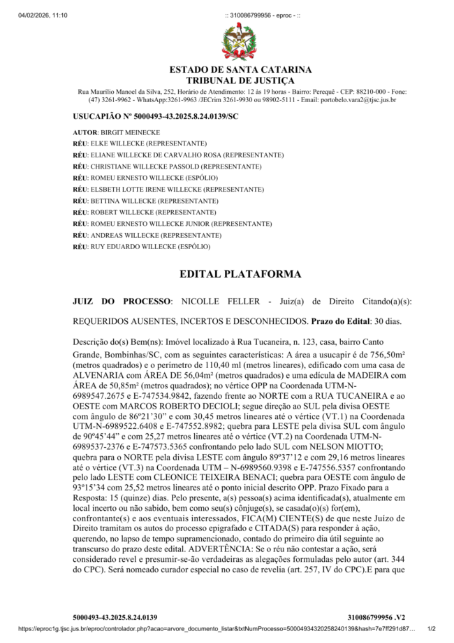 Publicação Legal: Edital de Usucapião