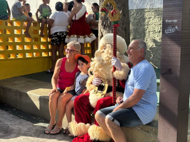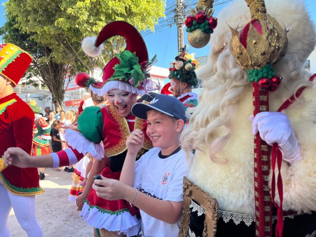 A tarde desta quinta-feira (18) foi especial para as famílias do Bairro das Nações, que receberam a visita de artistas do Viva o Natal BC 2025 e do Papai Noel em uma divertida parada natalina, que ocorreu na Praça Manoel Germano Correa, ao som do jingle “Viva o Natal BC”.